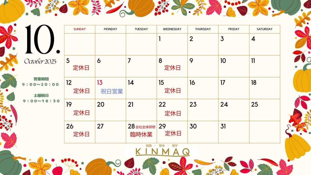 ・10月28日(火):会社全体研修のため、臨時休業とさせていただきます。