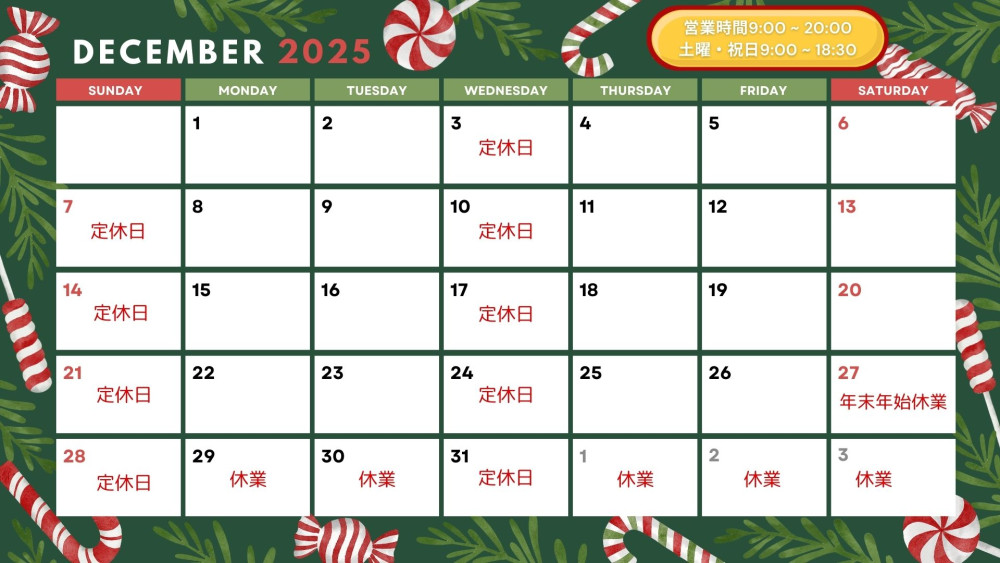 下記、12月の年末年始休業日をお知らせさせていただきます。